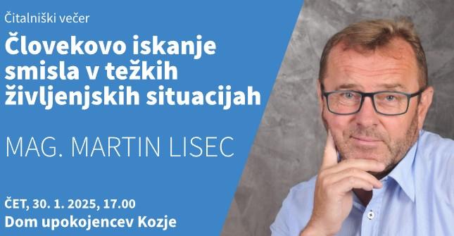 Vabljeni na čitalniški večer z mag. Martinom Liscem: Človekovo iskanje smisla v težkih življenjskih situacijah v četrtek, 30. 1. 2025, ob 17. uri v Domu starejših Kozje.