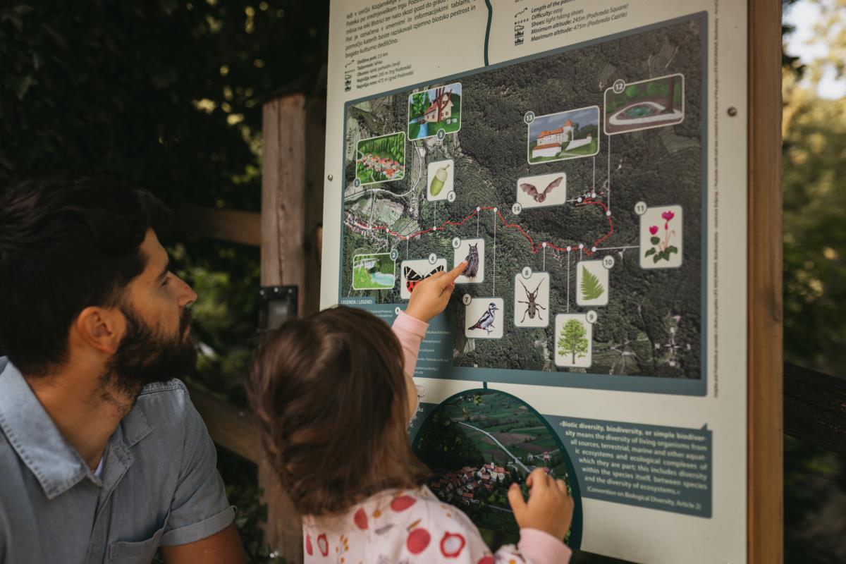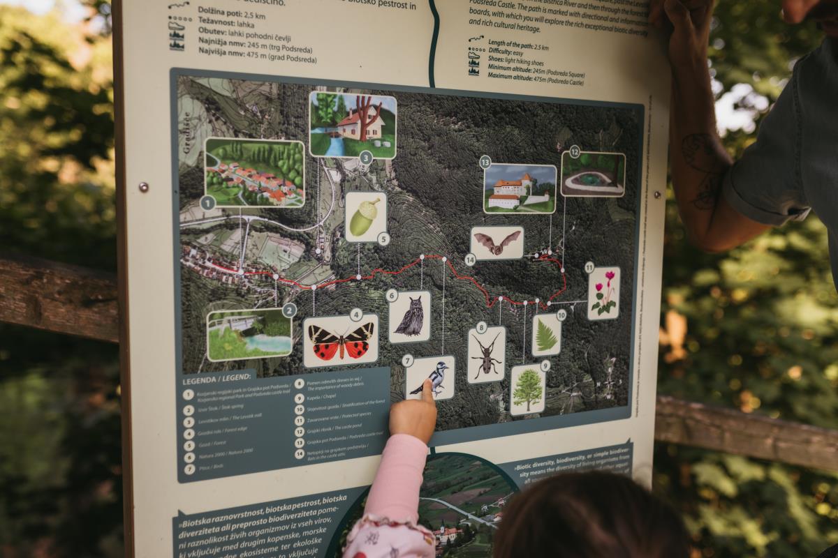 Na 2,5 km dolgi poti lahko obiskovalci na 14 interaktivnih točkah izvedo več o naravi Kozjanskega regijskega parka, s pomočjo informativnih tabel odkrijejo izjemno biotsko raznovrstnost okolice in preizkusijo svoje znanje o gozdu ter o bogatem rastlinskem in živalskem svetu ob poti. Grajska pot Podsreda je nastala v okviru projekta »Biodiverziteta – umetnost življenja« z akronimom LIFE Naturaviva (LIFE 16 GIE/SI/000711), v katerem Kozjanski park sodeluje kot partner.