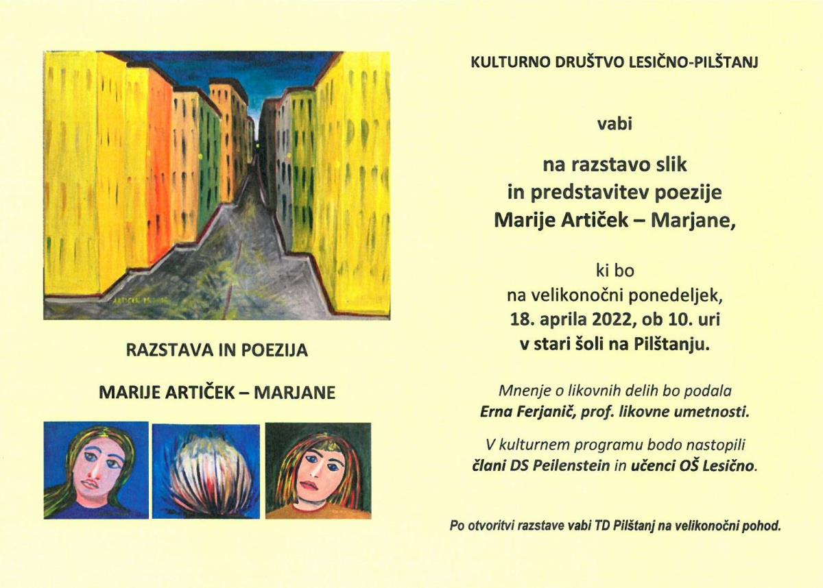 Na velikonočni ponedeljek bodo imeli na Pilštanju ob 10. uri otvoritev razstave likovnih del Marije Artiček - Marjane.